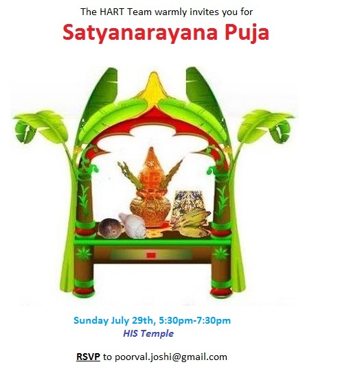 [Histemple] Satyanarayana Puja: Sunday July 29th, 5:30 pm @ HIS Temple