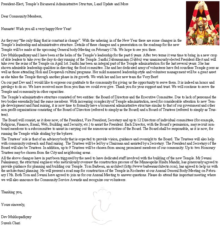>>> of the Temple in Rochester at our Annual General Body Meeting on