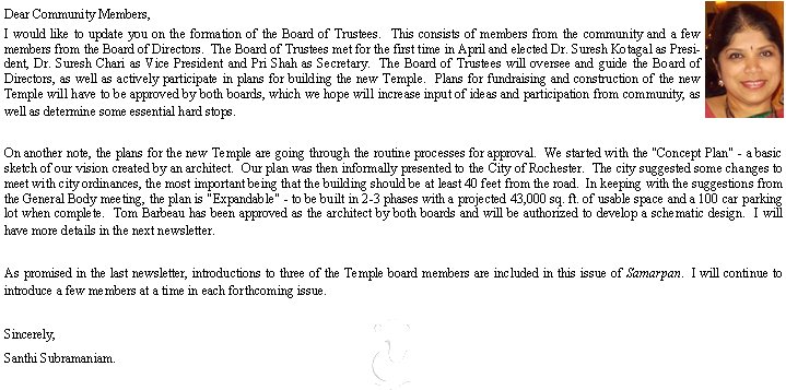 board members are included in this issue of Samarpan. I will continue to