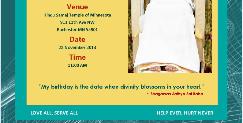 [Histemple] Bhagawan Sri Sathya Sai Baba Birthday celebration- 11/23/2013 at 11AM