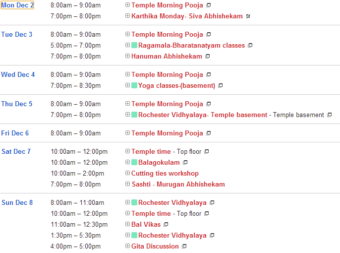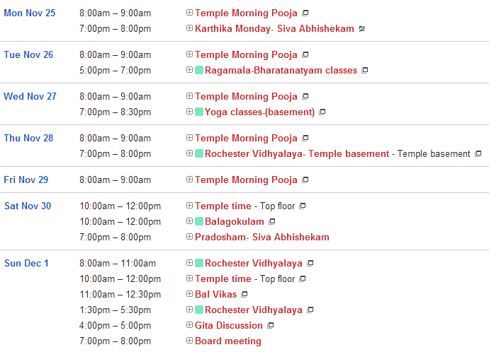 [Histemple] Events from 11/25/2013 - 12/08/2013 at Hindu Samaj Temple Rochester MN