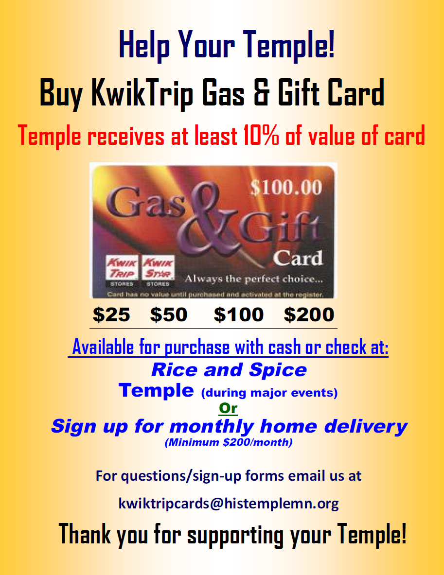 > *All donations to the Temple are Tax Deductible as the Hindu Samaj