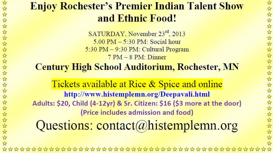 [Histemple] Diwali Cultural Programs on 11/23/2013