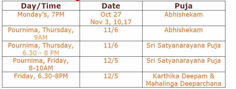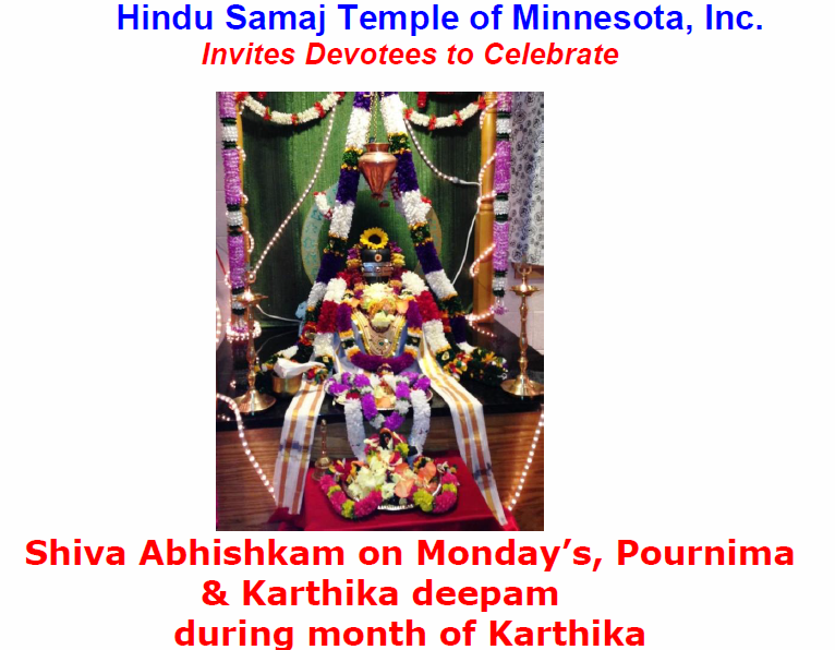[Histemple] Shiva Abhishkam on Monday’s, Pournima,& Karthika deepam,during month of Karthika
